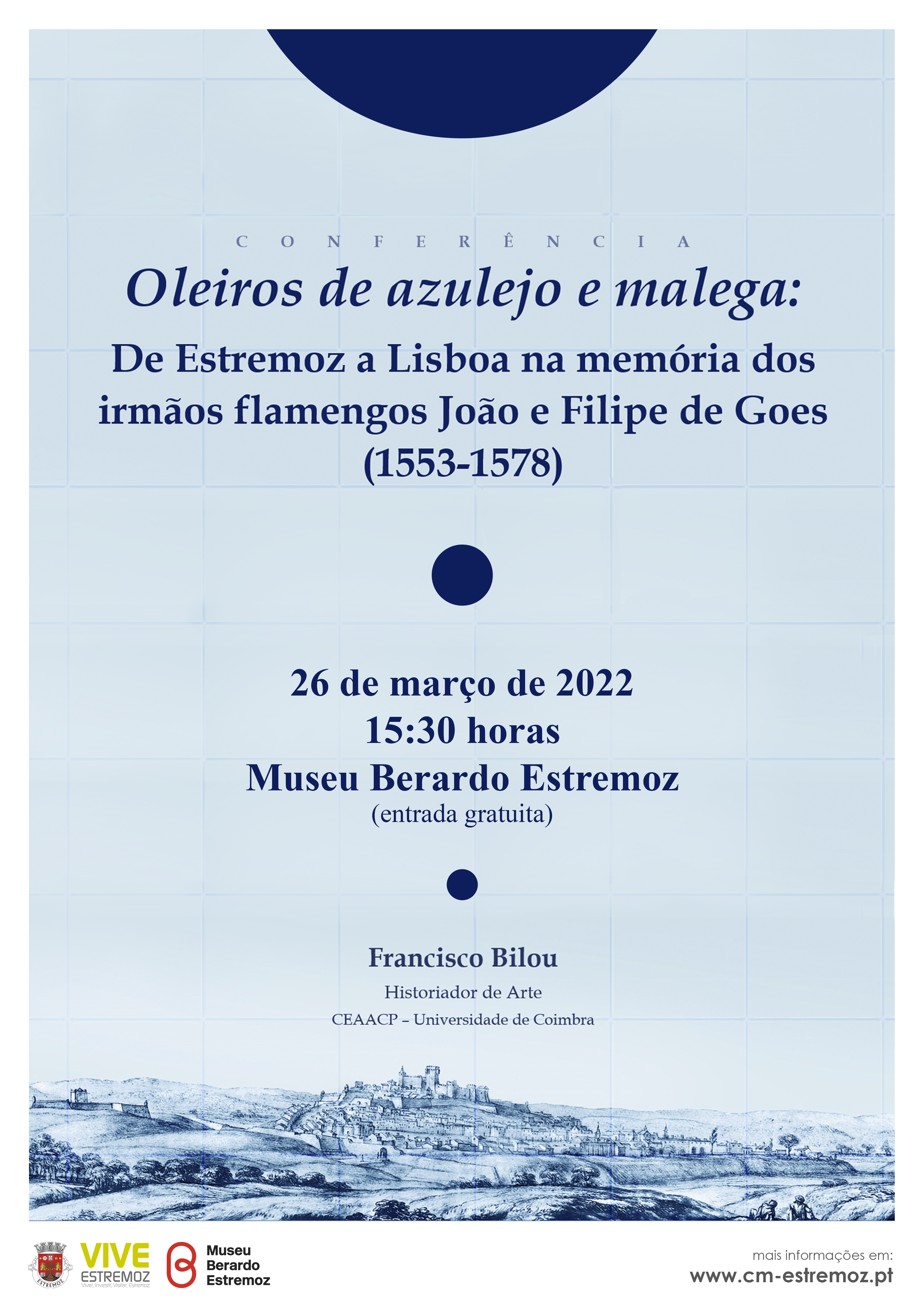 No dia 26 de março, pelas 15:30 horas, no Museu Berardo Estremoz, irá decorrer a conferência "Oleiros de azulejos e malega: De Estremoz a Lisboa na memória dos irmãos flamengos João e Filipe de Goes (1553-1578)", pelo historiador de arte Francisco Bilou.