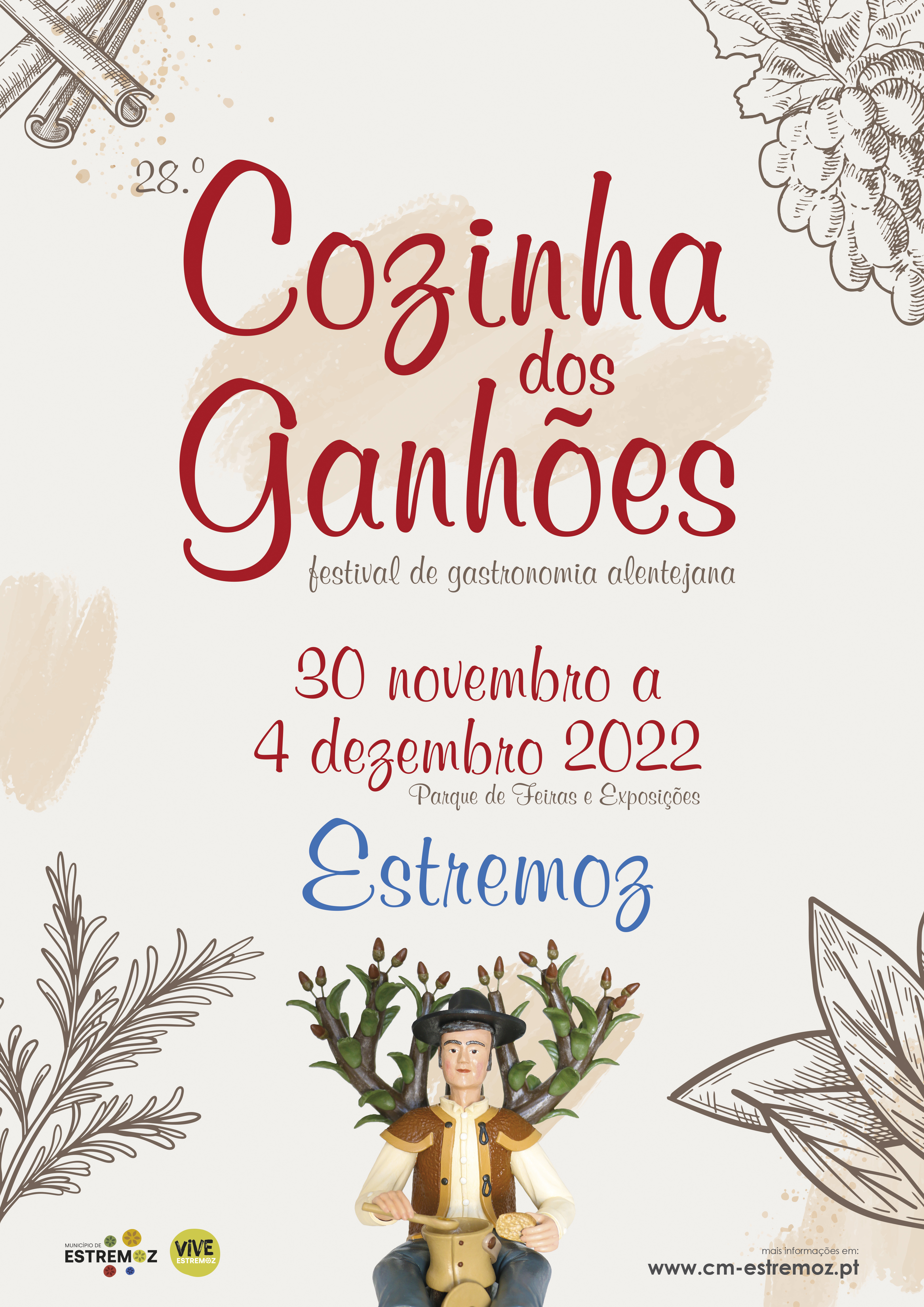 A Câmara Municipal de Estremoz organiza a 28.ª edição da Cozinha dos Ganhões, que decorrerá no Parque de Feiras e Exposições de Estremoz, de 30 de novembro a 4 de dezembro de 2022.