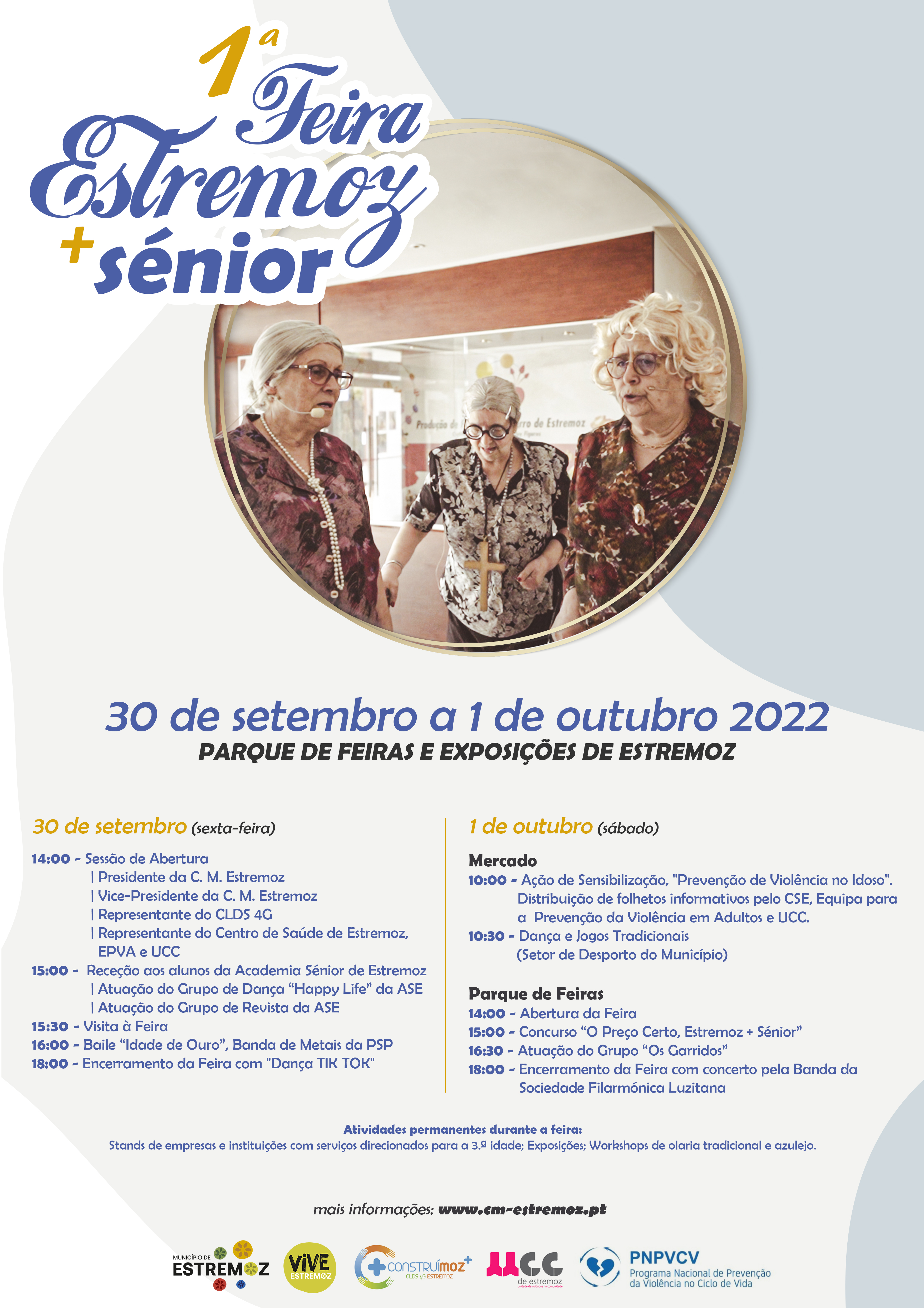 Stands de empresas e instituições com serviços direcionados para a 3.ª idade; Exposições; Workshops de olaria tradicional e azulejo.