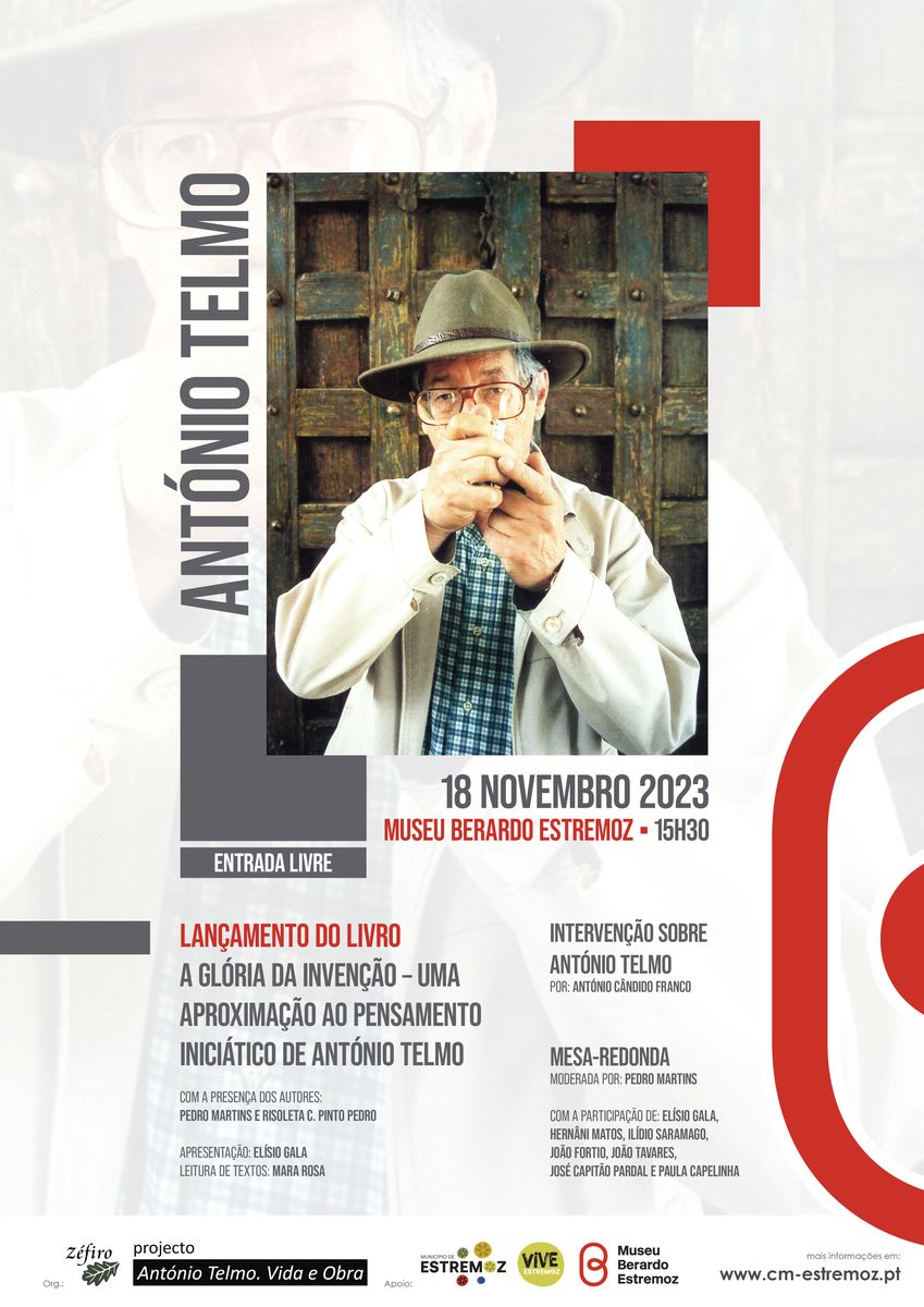 A abrir a sessão terá lugar a apresentação, por Elísio Gala, ensaísta e professor de Filosofia na Escola Secundária do Redondo, do livro A Glória da Invenção – Uma aproximação ao pensamento iniciático de António Telmo, de Pedro Martins e Risoleta C. Pinto Pedro, recentemente editado pela Zéfiro, que é também a chancela que publica as Obras Completas de António Telmo. Mara Rosa fará a leitura de alguns excertos da obra.