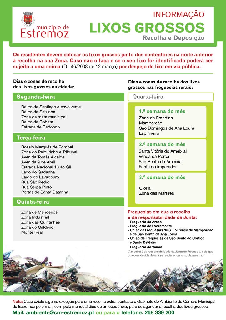 - União de Freguesias de Estremoz, nos seguintes locais: Casais de Sta. Maria - Rua Machado dos Santos, Rua José Félix Ribeiro, Rua 31 de Janeiro, Largo General Graça, Rua 5 de Outubro, Rossio Marquês de Pombal, Largo da República, Rua João de Sousa Carvalho, Bairro da Salsinha - Rua da Venezuela, Rossio Marquês de Pombal, Largo de S. José, Largo da Praça de Touros.