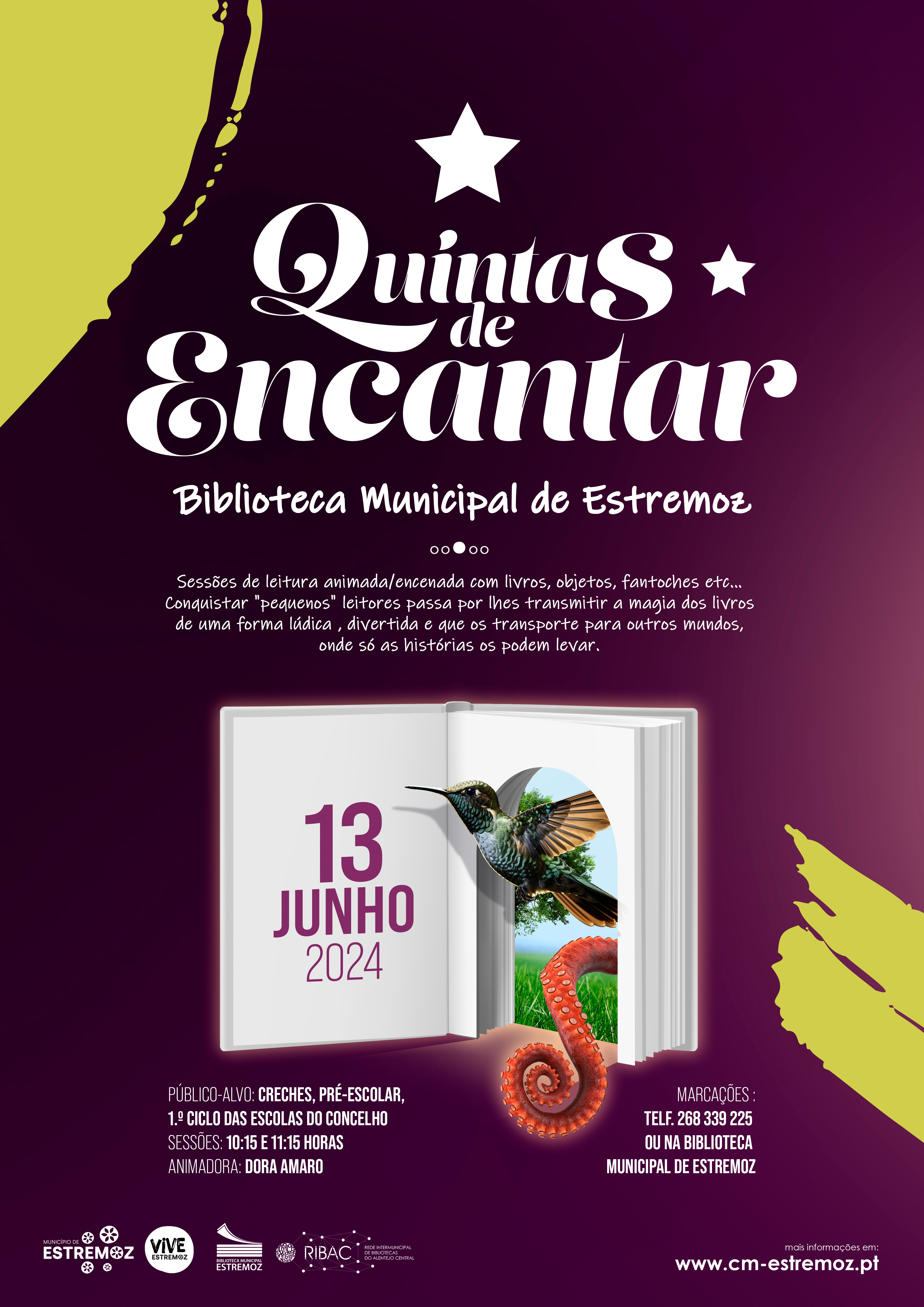 A Biblioteca Municipal de Estremoz promove a iniciativa "Quintas de Encantar" oferecendo sessões de leitura animada/encenada, que visam motivar os mais jovens para a leitura de forma lúdica e dialógica possibilitando-lhes viagens pelo mundo da imaginação, alargando e enriquecendo os seus horizontes.