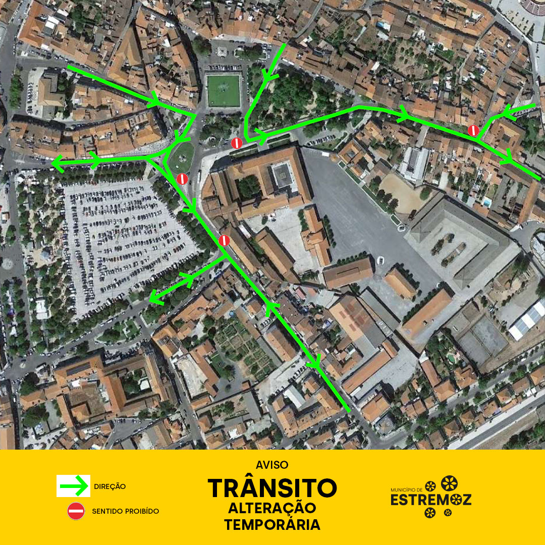 No âmbito da visita de Sua Exa. a Ministra da Defesa, a Estremoz, dia 21 de junho de 2023, e de forma a dar resposta ao programa da visita, nomeadamente no que diz respeito à cerimónia junto ao monumento ao Combatente, o trânsito junto à rotunda do Combatente, estará condicionado, entre as 10:30 horas e as 11:30 horas, de acordo com planta em anexo.