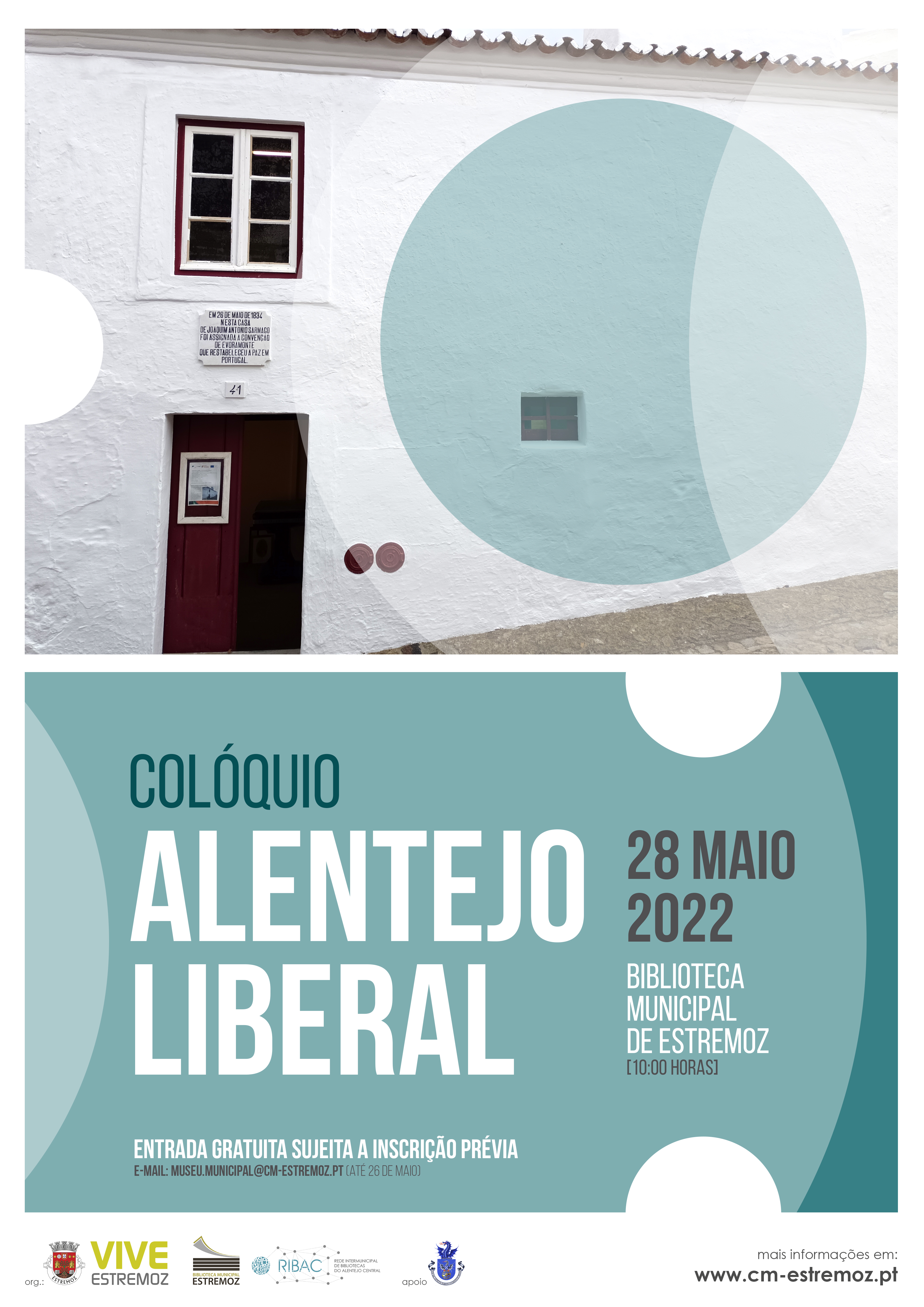 No dia 28 de maio, pelas 10:00 horas, decorrerá o Colóquio “Alentejo Liberal”, no Auditório da Biblioteca Municipal, que pretende evocar a Convenção de Evoramonte, da qual celebramos o 188º aniversário, a 26 de maio de 2022.