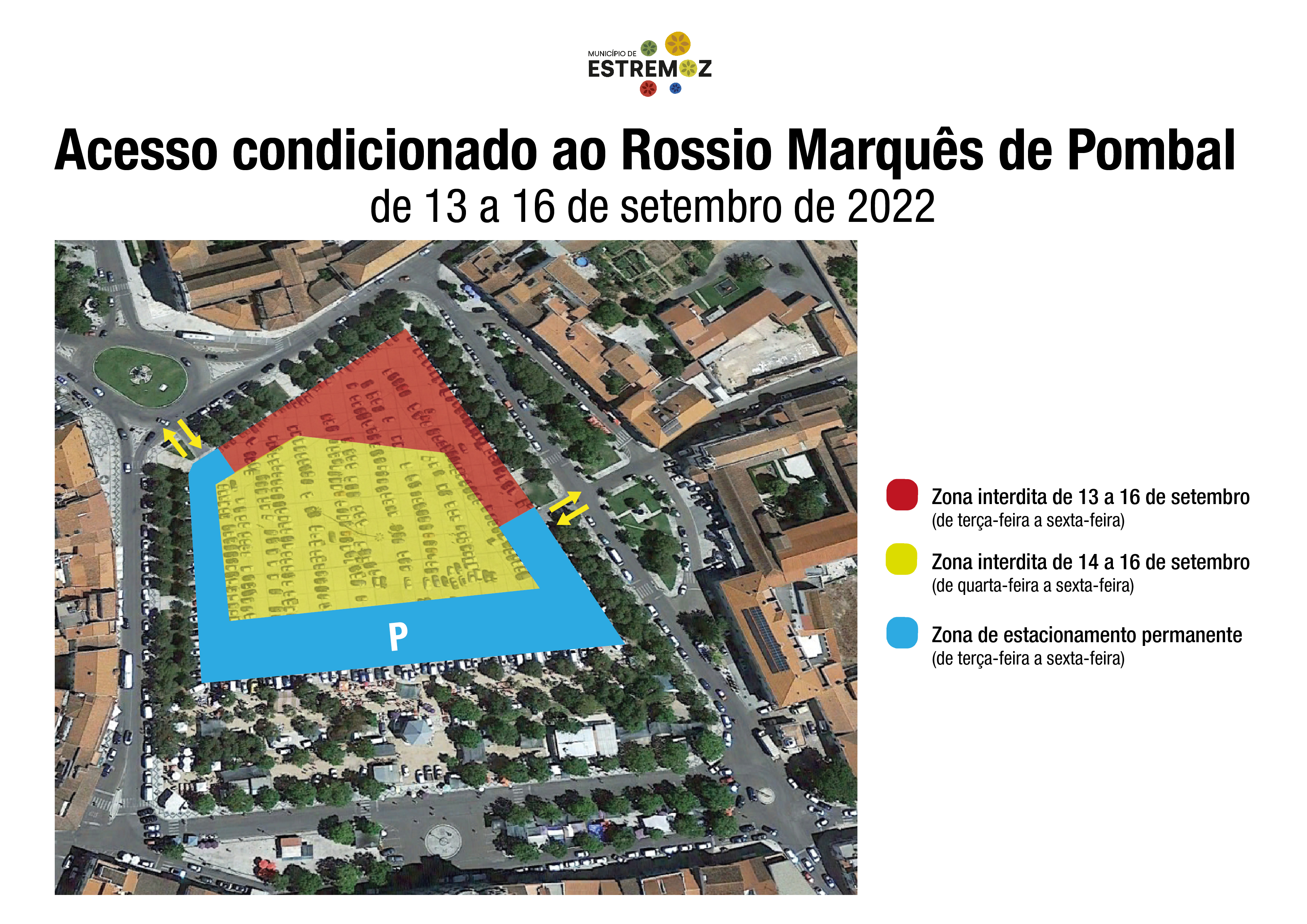 - de quarta a sexta-feira (14 a 16 de setembro) o centro do Rossio Marquês do Pombal estará encerrada ao trânsito para montagem de infraestruturas e Cerimónia do Dia do RC3 (ver imagem);