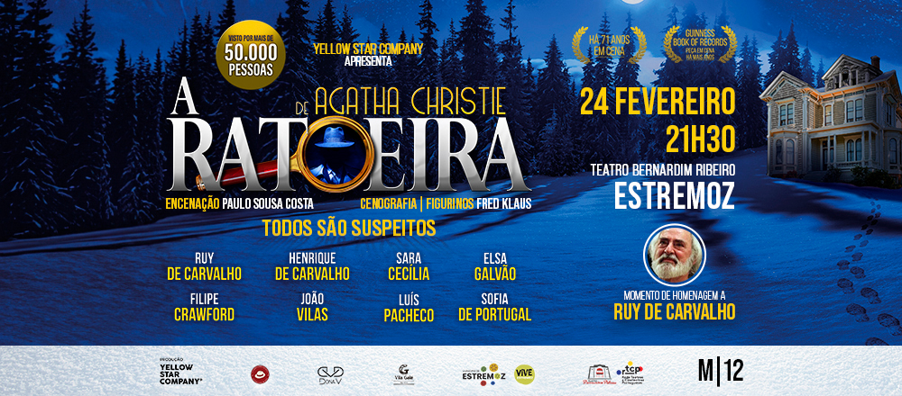 Espetáculo "A Ratoeira" com homenagem a Ruy de Carvalho, no Teatro Bernardim Ribeiro (Estremoz) a 24 de Fevereiro
