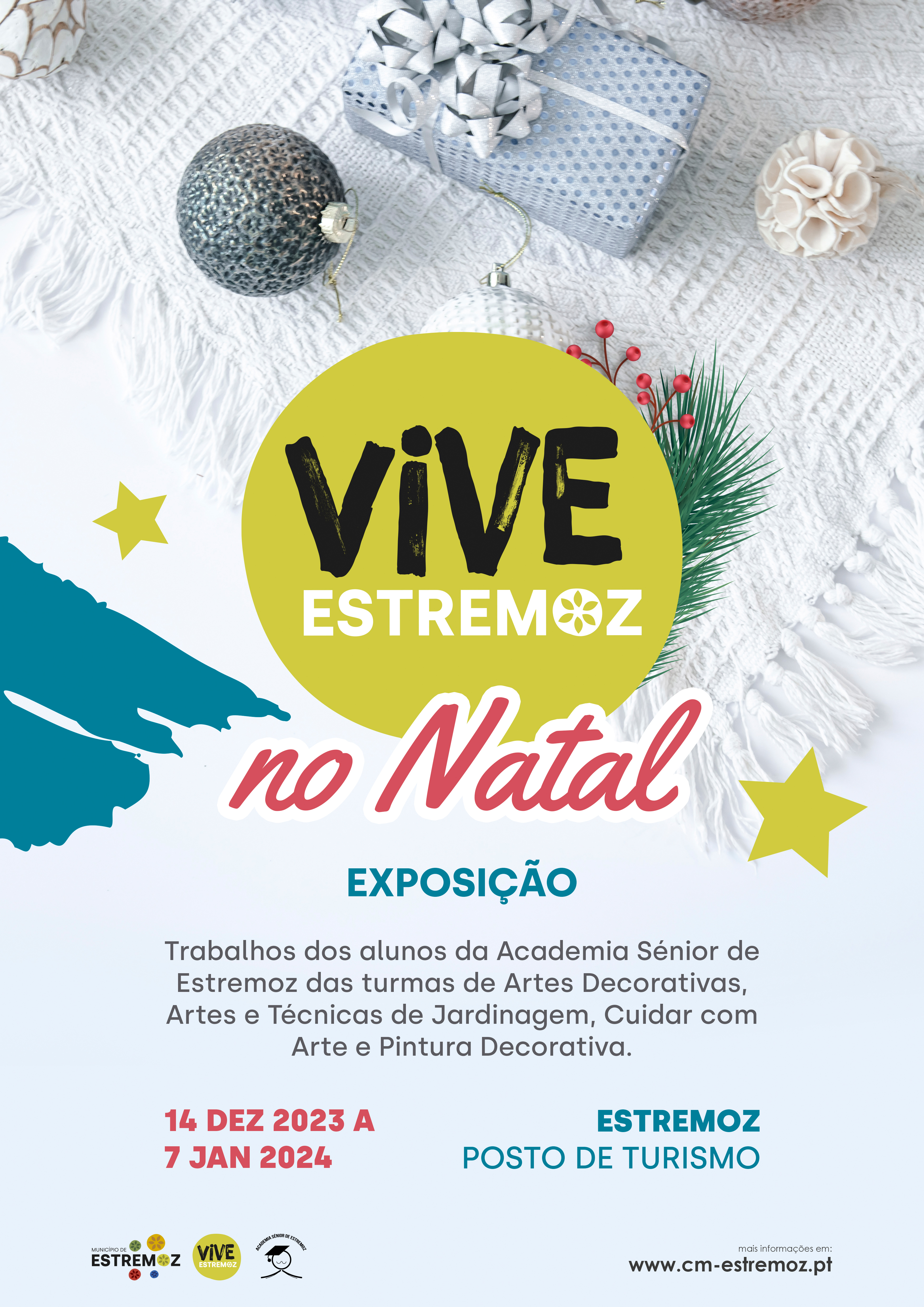 Será inaugurada, no dia 14 de dezembro, pelas 15h00, no Posto de Turismo de Estremoz, a exposição "VIVE Estremoz no Natal" que apresenta trabalhos dos alunas da Academia Sénior de Estremoz.