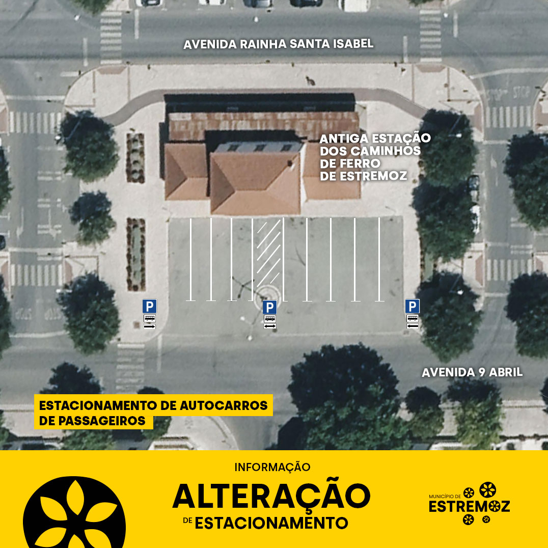 O Município de Estremoz informa que, a partir de amanhã, dia 31 de julho de 2025, o Parque de Estacionamento, situado na Avenida 9 de Abril, junto à antiga Estação dos Caminhos de Ferro de Estremoz, será destinado, em exclusivo, para o Parqueamento de Autocarros de Passageiros.