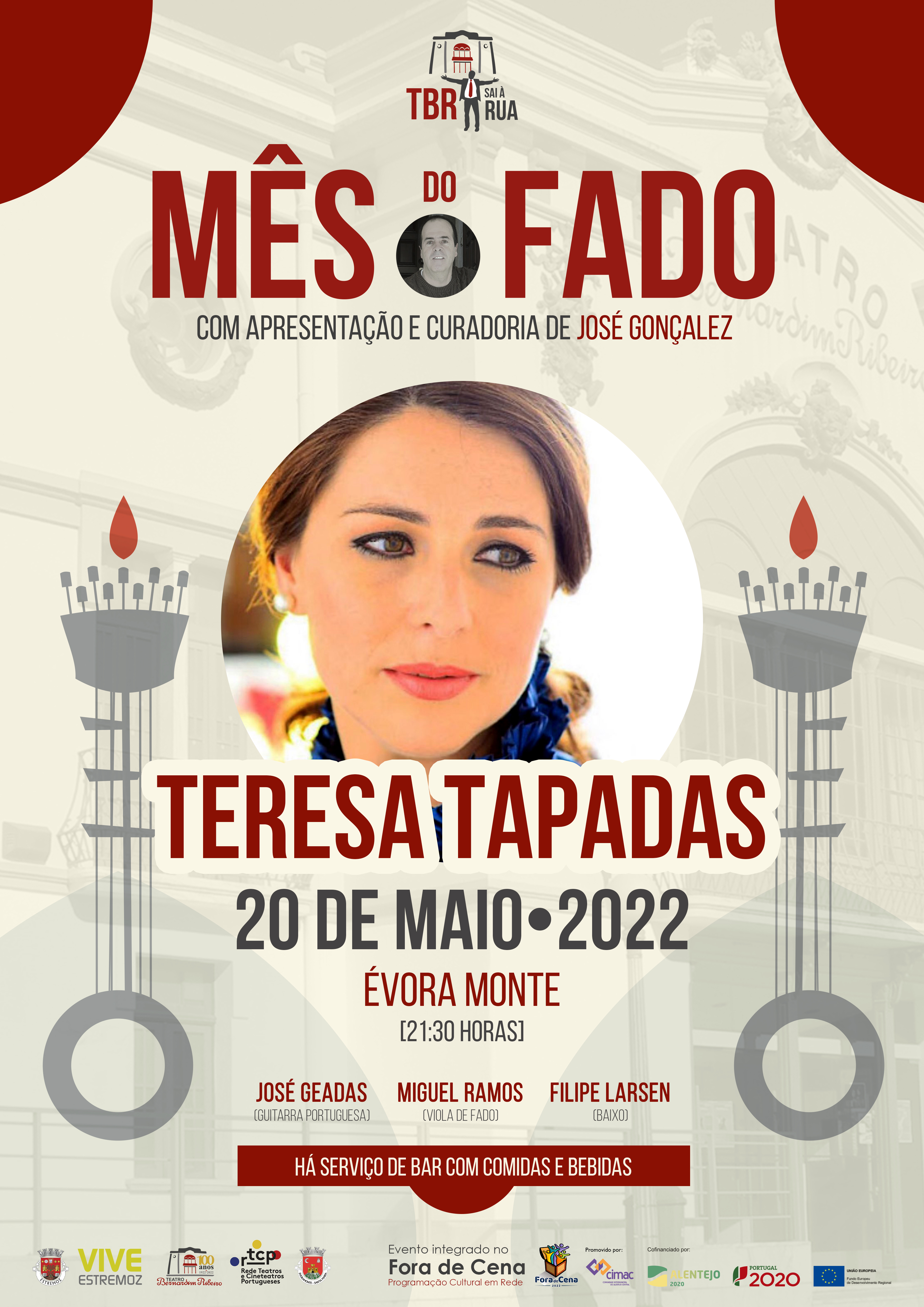 Dia 20/05/2022 - TBR Sai à Rua - Fados em Évora Monte, com Teresa Tapadas - 21h30 - ENTRADA LIVRE