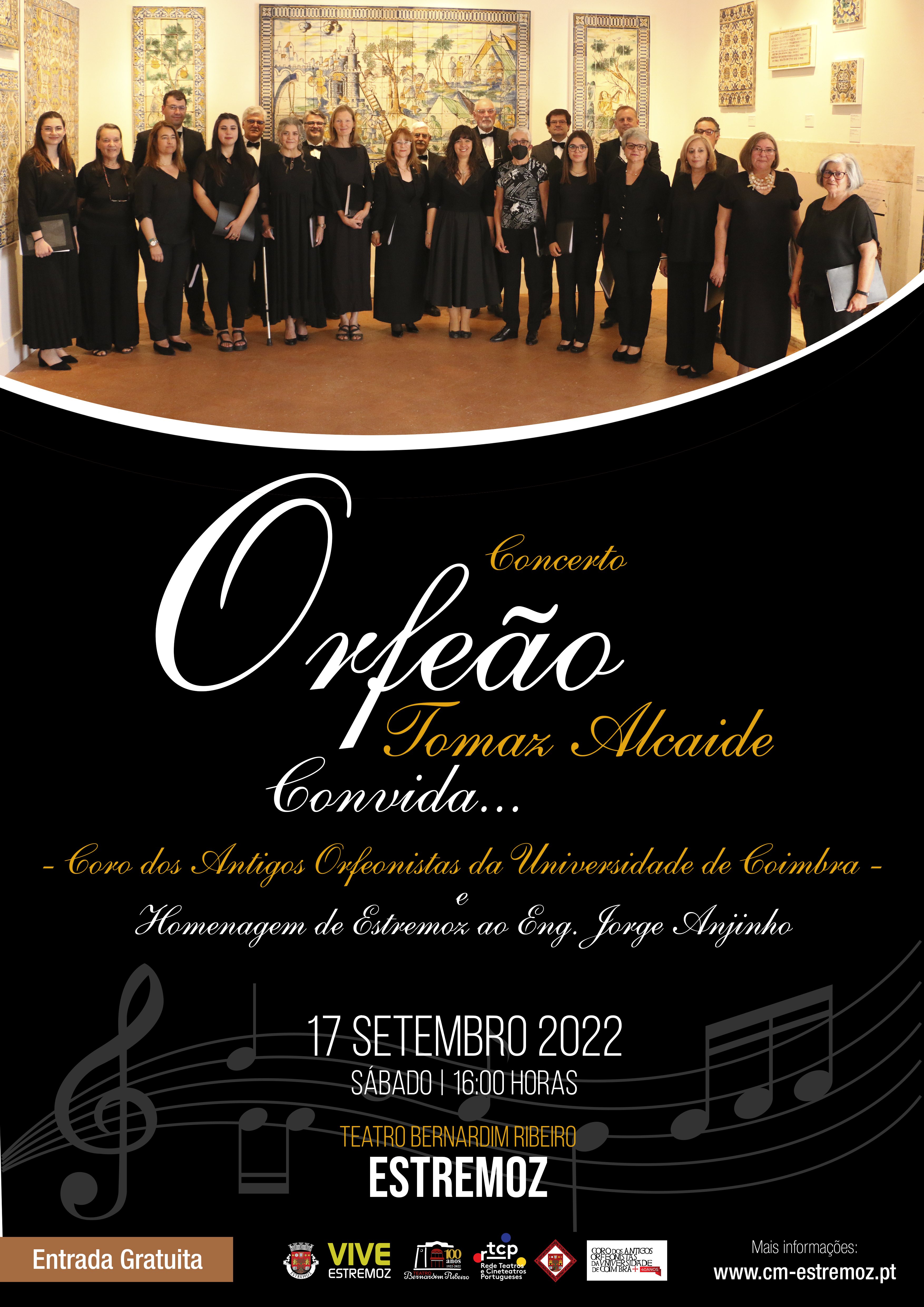 No próximo dia 17 de setembro, a sala de espetáculos mais emblemática do concelho de Estremoz, o Teatro Bernardim Ribeiro, receberá o evento "O Orfeão de Estremoz convida...". Integrado na Programação do Centenário daquela sala de espetáculos, a instituição estremocense, como proposta do Município de Estremoz, convidou o Coro dos Antigos Orfeonistas da Universidade de Coimbra para um espetáculo de música coral. O espetáculo acontecerá pelas 16 horas e terá uma dupla vertente, a de proporcionar aos espetadores a atuação de dois grupos corais de inquestionável qualidade e a possibilidade de ser reconhecida a vida e obra da figura de Jorge Anjinho, estremocense nascido na freguesia da Glória, com fortes ligações à nossa cidade mas também à cidade de Coimbra, com obra quer no campo social, desportivo ou associativo, tendo sido, por exemplo, Presidente da Associação Académica de Coimbra e um dos responsáveis pela construção do Pavilhão da Académica cujo seu nome ostenta em sua homenagem. Em Estremoz teve uma participação ativa em vários cargos nos Corpos Sociais dos Bombeiros Voluntários de Estremoz, sendo até um dos responsáveis na ajuda à implementação da atual sede da instituição. No decorrer desta homenagem a título póstumo a que os Municípios de Coimbra e Estremoz, os Bombeiros da nossa cidade e a Associação Académica de Coimbra se associaram, atuará ainda o seu neto Tiago Anjinho, violoncelista de renome com primeiros prémios em vários concursos nacionais e internacionais.