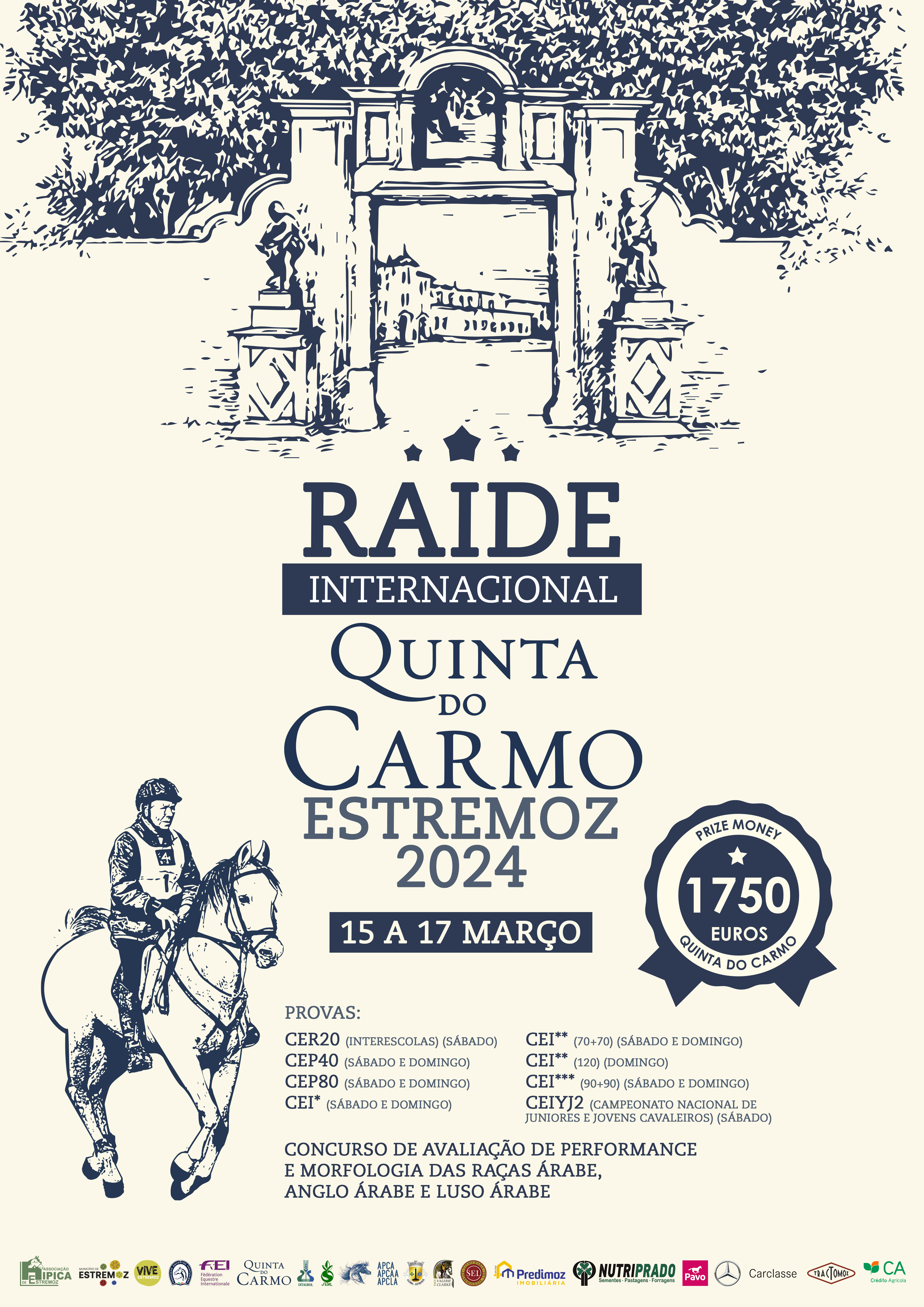 Irá decorrer, entre os dias 15 a 17 de março, o Raide Internacional Quinta do Carmo Estremoz 2024.