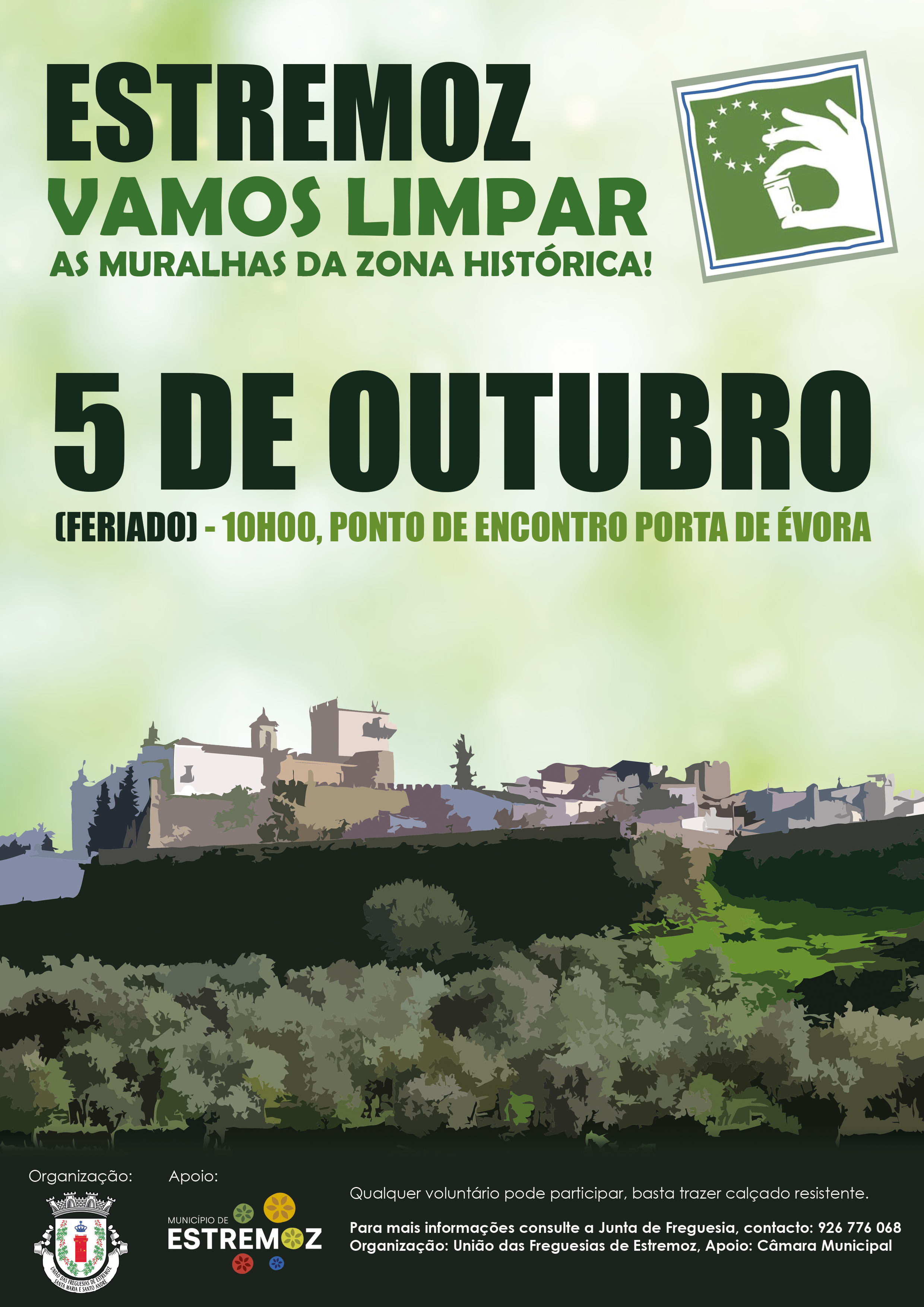 Amanhã, dia 5 de outubro, feriado nacional, pelas 10:00 horas, com ponto de encontro na Porta de Évora, vai decorrer a iniciativa "Vamos Limpar as Muralhas da Zona histórica em Santiago", com o lema "Uma cidade limpa beneficia todos".